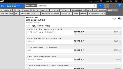 ※ 画面イメージ例:実際の整備情報表示(配線図/締付トルク/作業手順)