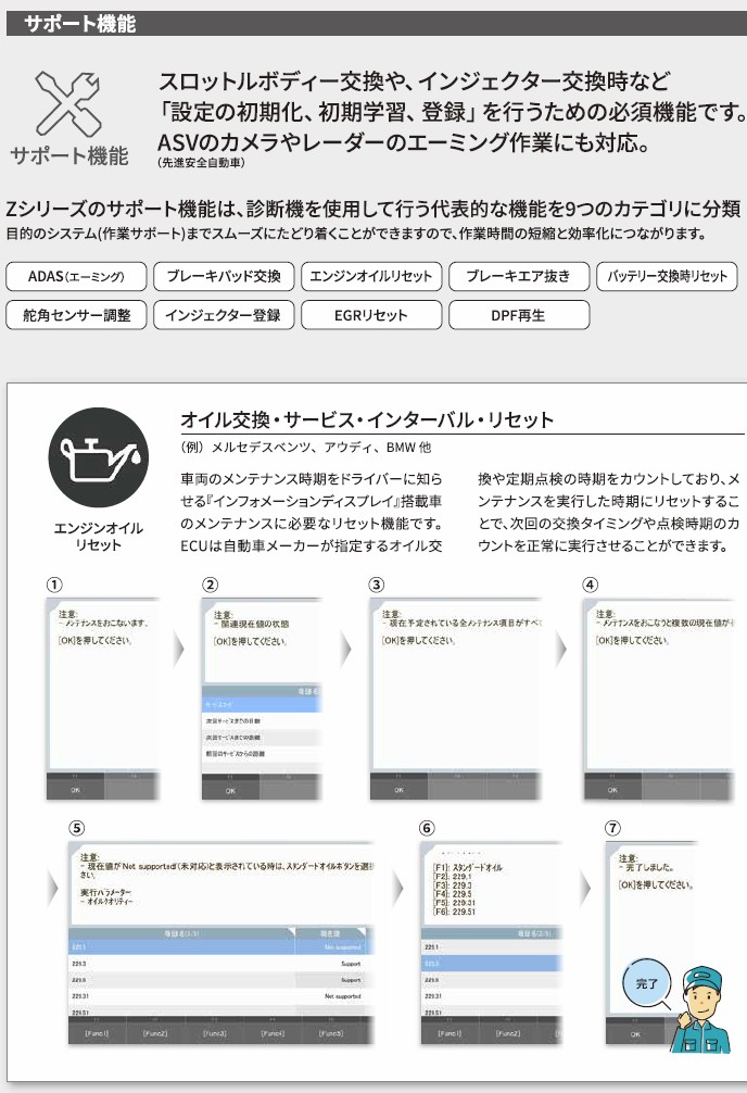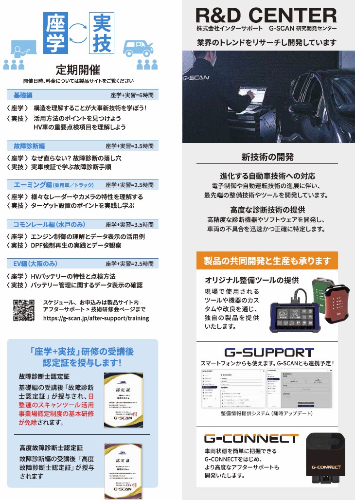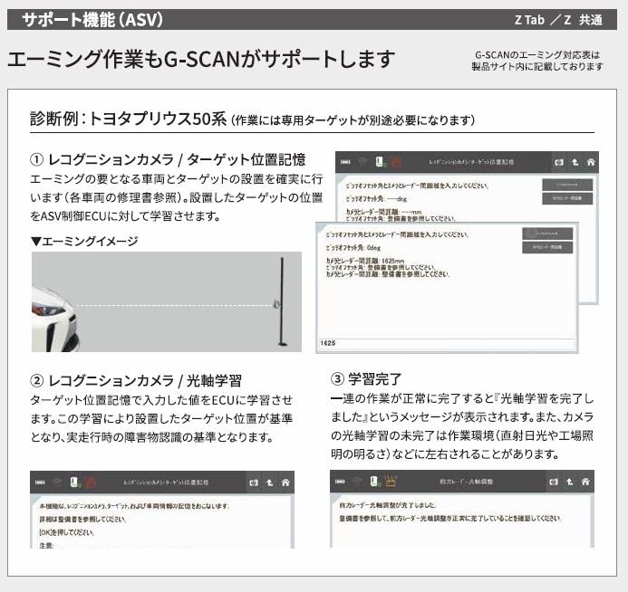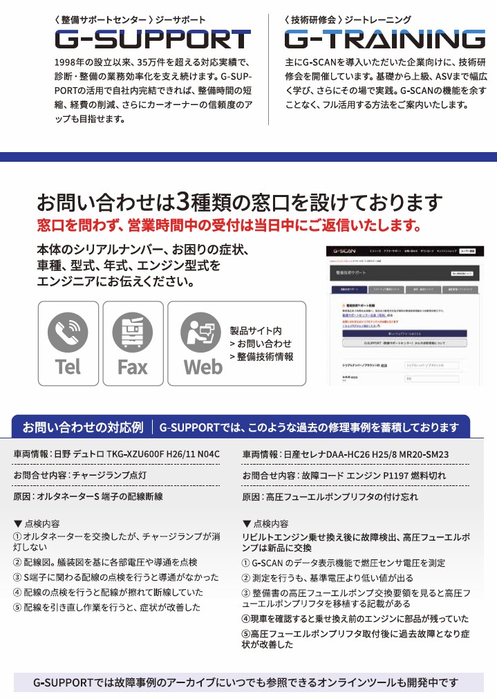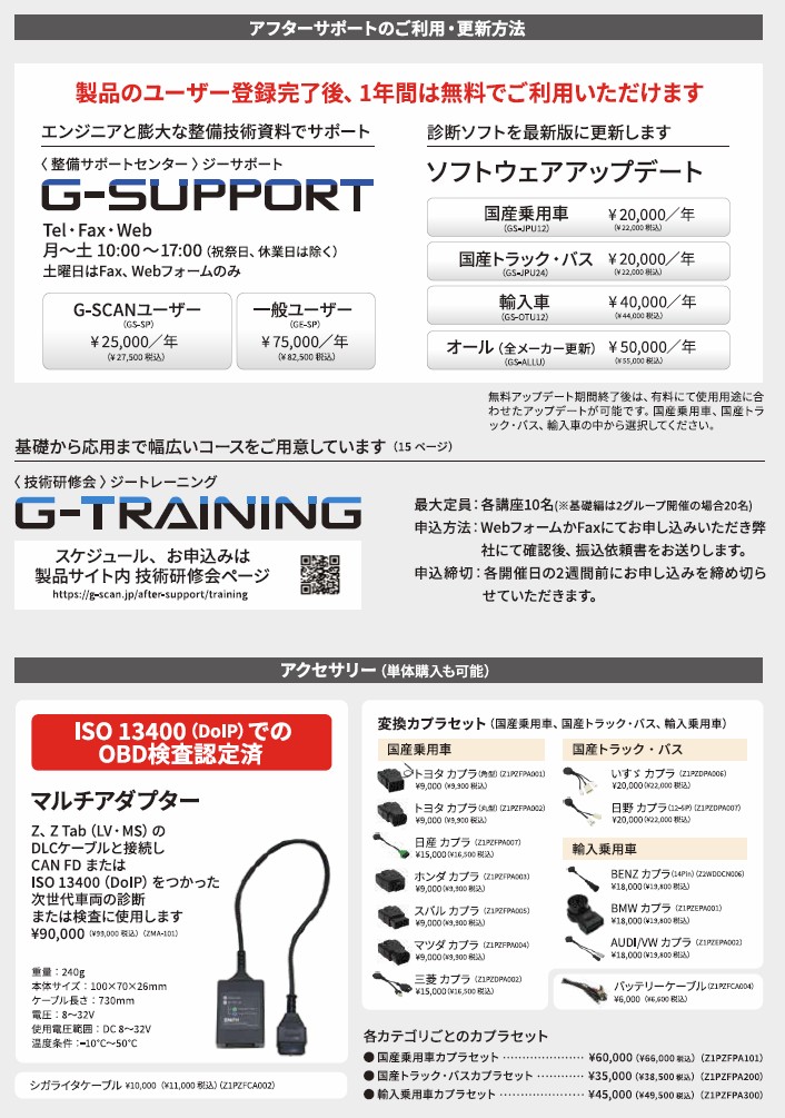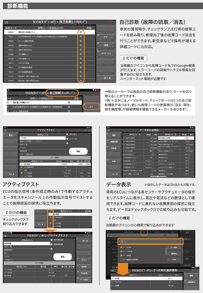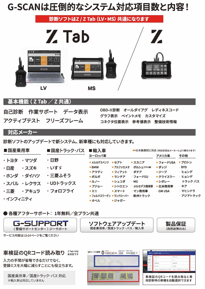 - G-SCAN Z シリーズ共通の診断ソフトを搭載し、自己診断からアクティブテストまで幅広く対応