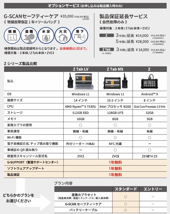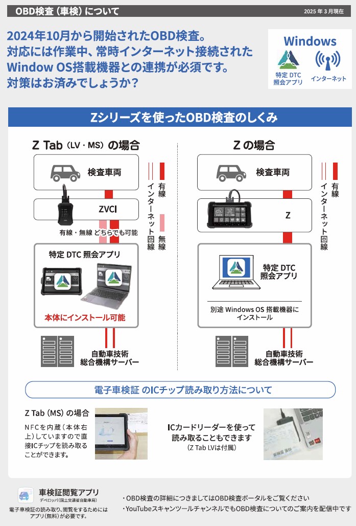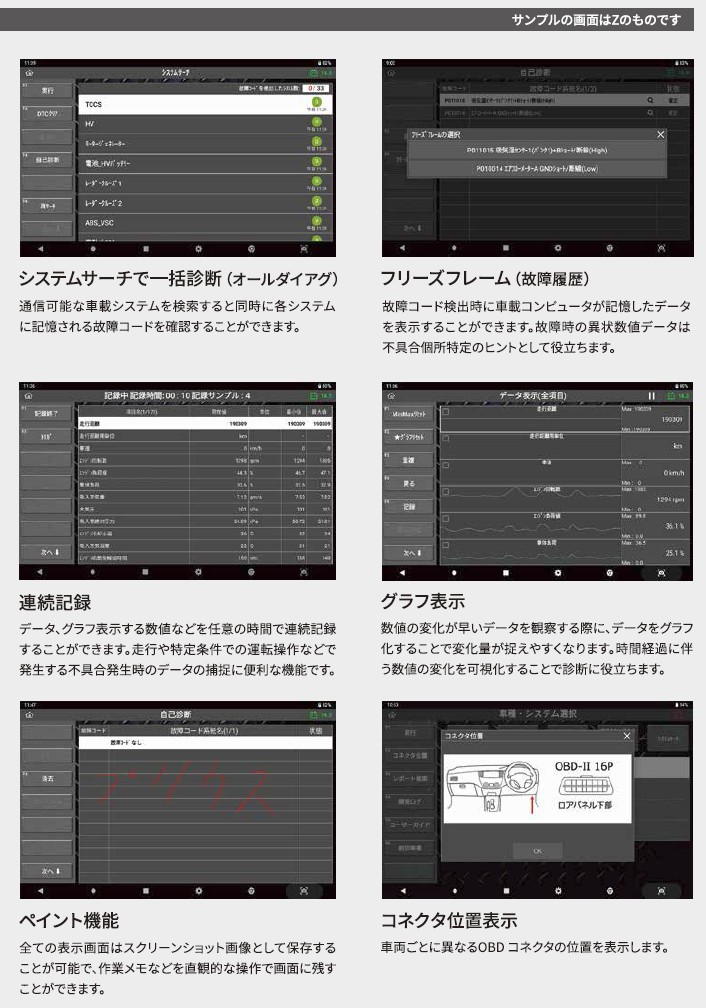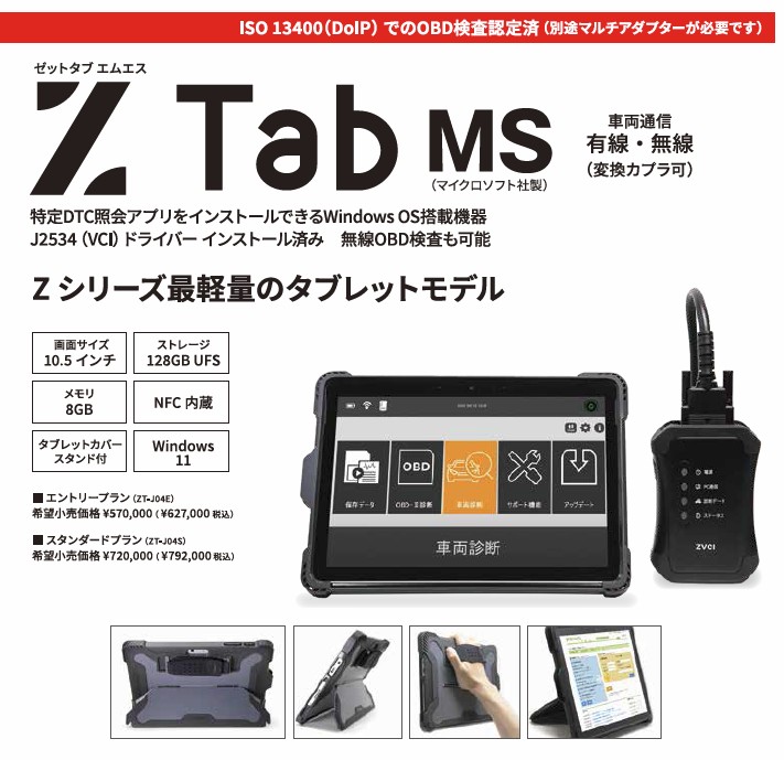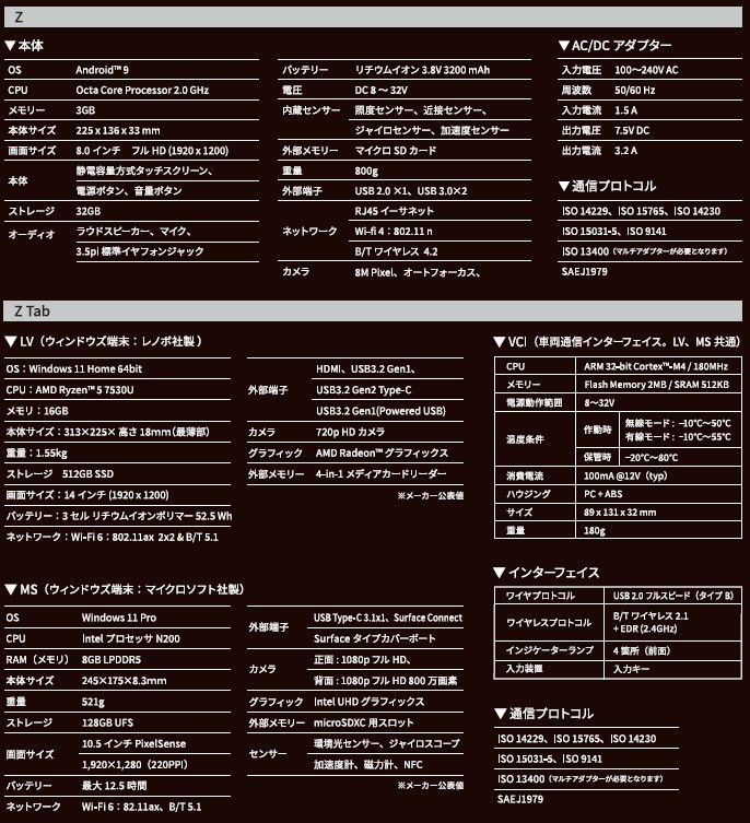 | 構成 | Z 本体(ZVCI)+専用OBDインターフェース+Windowsタブレット(Z Tab MS) |