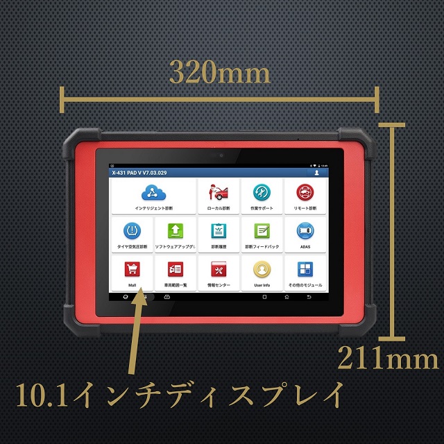 X-431 PAD VはAndroid 7.1に基づいて新たに開発された最上級の総合的な診断ツールで、幅広い車両範囲、強力な診断機能を備えています。IP65ケースは作業をより快適にする為に水や埃からの損傷を防ぎます。